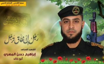 الشهيد المجاهد إبراهيم حسن المصري رجل الإعداد والتجهيز أبدع في كل الميادين وقدم الواجب فوق الإمكان ليرتقي شهيداً أثناء تنفيذه لمهمة جهادية بعد أن أذاق العدو الصهيوني الويلات في جولات المواجهة السابقة فلك منا كل الوفاء يا أبا خالد.