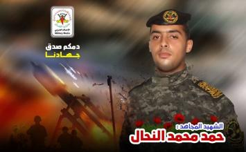 فقد ارتقى شهيدنا المجاهد "حمد محمد النحال" برفقه المجاهد "موسى عبد العال" إلى علياء المجد والخلود جراء استهدافهم بصواريخ من طائرة صهيونية يوم الاثنين الموافق 12_ 11 _ 2018 ، ليمضي إلى ربه بعد حياةٍ مباركةٍ حافلةٍ بالعطاء والجهاد والتضحية والرباط في سبيل الله، نحسبه من الشهداء الأبرار الأطهار ولا نزكي على الله أحداً، وإنا على دربه الذي قضى فيه شهيداً، درب الجهاد والمقاومة لسائرون بإذن الله.