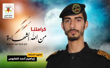 في مساء يوم الثلاثاء الموافق 12/11/2019م، كان شهيدنا المجاهد ابراهيم الضابوس على موعد مع الرحيل بعد تأديته لواجبه الجهادي بقصف المدن والمغتصبات الصهيونية بالصواريخ التي زلزلت حصون العدو، حيث استهدفته طائرات الاحتلال الصهيوني بصواريخها ليرتقي شهيداً بإذن الله، ليسطر بدمائه أروع ملاحم البطولة والعزة والفداء.