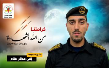 ارتقى شهيدنا المجاهد زكي عدنان غنام الى علياء المجد والخلود في معركة صيحة الفجر البطولية, يوم الثلاثاء الموافق 12/11/2019م، حيث قام شهيدنا بأداء واجبه الجهادي بدك مغتصبات العدو بصواريخ الجراد المباركة، وبعد انتهائه باغتته طائرات الاحتلال الصهيوني بصواريخها ليرتقي شهيداً مدرجاً بدمائه الطاهرة الزكية ليختم حياته ورحلة غُربته واشتياقه، ويسطر بدمائه أروع ملاحم البطولة والعزة والفداء.