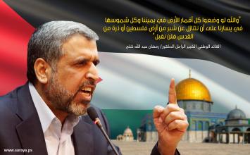 "القدس بالنسبة لي جزء من ديني وعقيدتي، ومن يقول لي تنازل عنها كأنما يقول لي احذف سورة الإسراء من القرآن"، بهذه الكلمات اشتهر القائد الوطني المفكر الراحل رمضان عبد الله شلح بدفاعه الدائم عن قضية القدس والمسجد الأقصى المبارك.