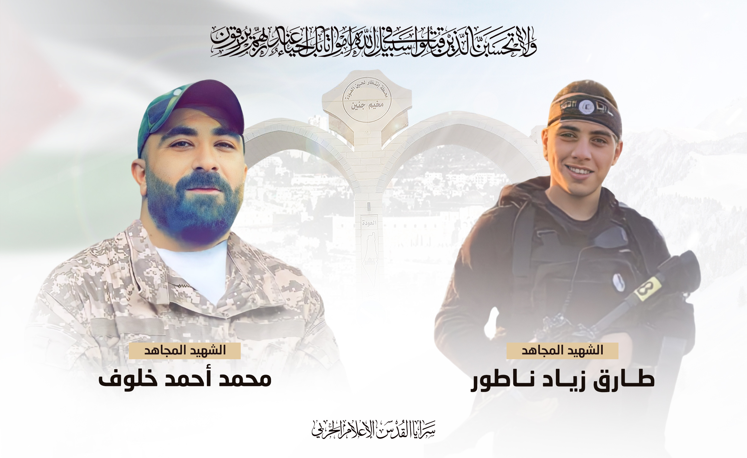 سرايا القدس تنعى ابنيها الشهيدين "خلوف وناطور" وتؤكد أن دماء الشهداء وقود لتصاعد المقاومة واستمرار القتال