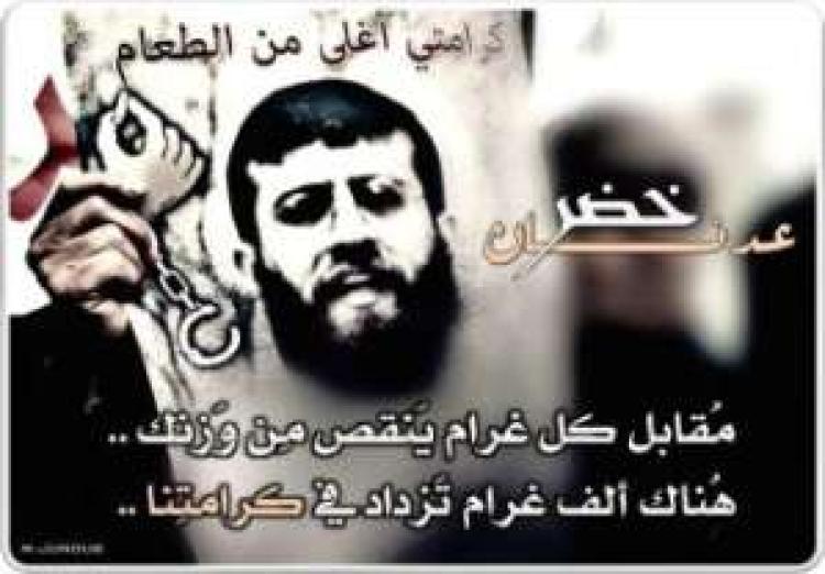 يواصل الأسير الشيخ خضر عدنان إضرابه عن الطعام لليوم الثامن والخمسين على التوالي مسطرا بذلك أعظم أسطورة تحد للاحتلال وسياساته العنصرية العمياء ،أن يستمر أسير في إضرابه المفتوح عن الطعام لمثل هذه المدة فهذا بالضرورة يعني أنه لن يكون إلا فلسطينيا.