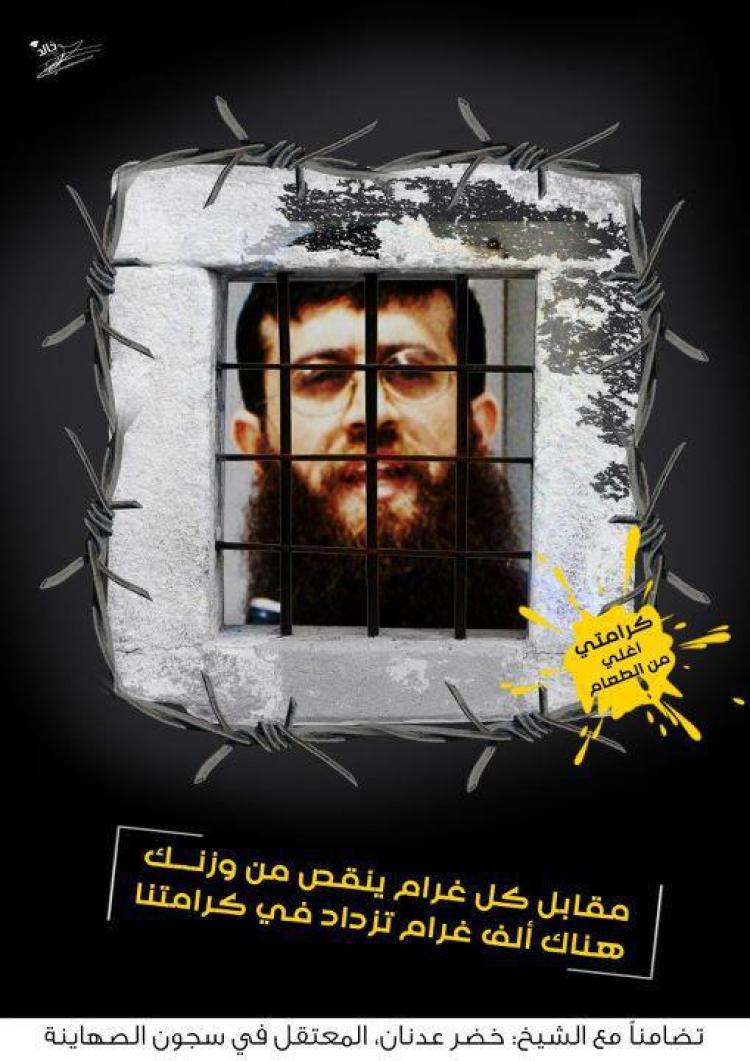 وطالب نادي الأسير الفلسطيني كافة جماهير الشعب الفلسطيني التحرك لإنقاذ الأسير خضر عدنان داعيا في الوقت نفسه كافة سفارات وقناصل وممثليات فلسطين في المنتشرة في العالم إلى وقفة تضامنية في نفس اليوم والوقت والزمان مع توجيه رسائل إلى كل المؤسسات الحقوقية في تلك الدول ليكون لها رأي وتدخل لإنقاذ الشيخ خضر عدنان .