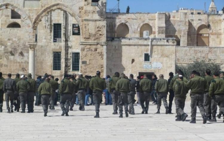 وبينت، أن الجنود اقتحموا الأقصى ونظموا جولات في أنحائه خاصة عند الجامع القبلي والمصلى المرواني وصحن مسجد قبة الصخرة، أما فرقة المخابرات فقد دنست الجامع القبلي المسقوف.