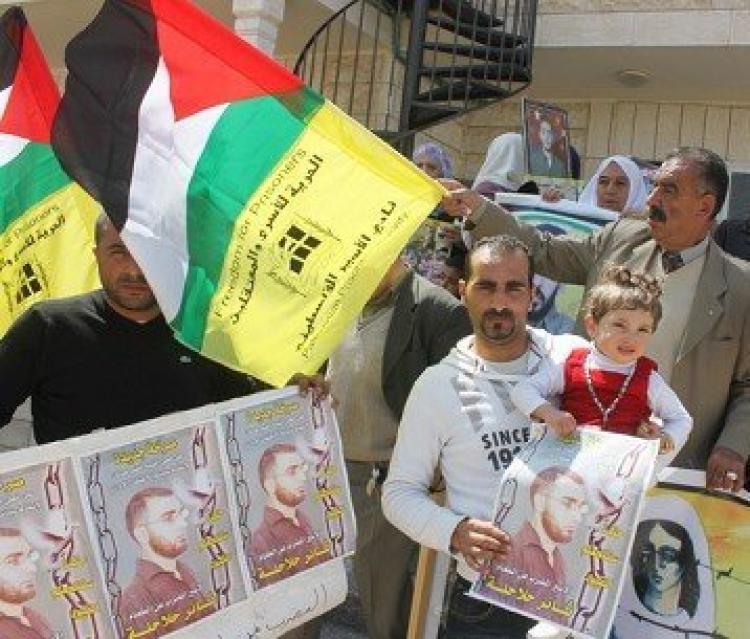 نظم نادي الأسير الفلسطيني في محافظة الخليل وبالتعاون مع لجنة أهالي الأسرى ووزارة شؤون الأسرى وممثلي القوى الوطنية وذوي الأسير ثائر حلاحلة وحشد من أهالي الأسرى والأسيرات اعتصاما جماهيريا تضامنيا مع الأسير ثائر حلاحلة الذي يخوض إضرابا مفتوحا عن الطعام منذ أكثر من شهر وبشكل متواصل احتجاجا على سياسة الاعتقال الإداري بحقه.