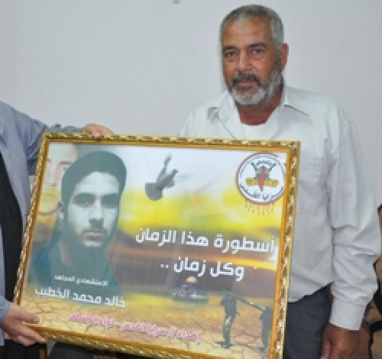 ومن جهته قال "أبو إبراهيم" احد قادة سرايا القدس بكتيبة النصيرات لمراسل موقع "الإعلام الحربي " والذي اصطحب المجاهدين بالزيارة: "إن الشهيد خالد الخطيب قدم روحة فداء للإسلام والوطن وكرمه الله تعالى بعملية بطولية كبيرة حصدت ثمانية جنود صهاينة وإصابة العشرات من بينهم إصابات بجروح خطيرة.