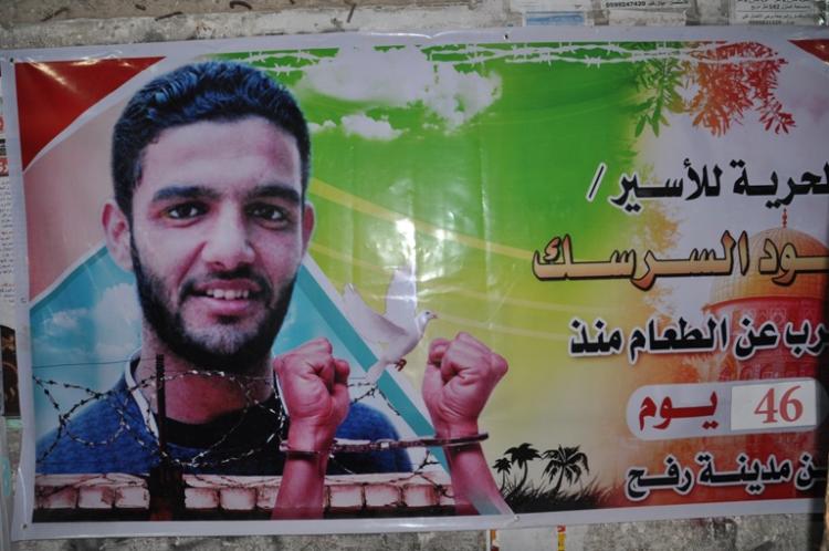 أكد الاسير محمود السرسك من قطاع غزة في اتصال هاتفي مع عائلته فجر اليوم انه يرفض العرض الصهيوني القاضي بإطلاق سراحه في الثاني والعشرين من شهر أب / أغسطس المقبل وهي فترة انتهاء حكمه ويصر على إطلاق سراحه في الأول من يوليو المقبل (..) مشدداً على مواصلة الإضراب المفرح عن الطعام حتى تحقيق مطالبة.
