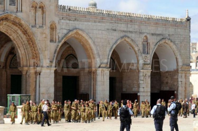 اقتحمت مجموعة كبيرة من الجنود الصهاينة صباح اليوم الثلاثاء، باحات المسجد الأقصى عبر باب المغاربة، تحت حماية الشرطة الصهيونية.