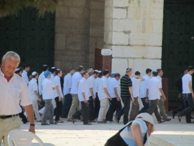 وقالت مؤسسة الأقصى للوقف والتراث في بيان لها إن نحو 30 مستوطنًا اقتحموا المسجد الأقصى ودنسوا مرافقه، مشيرة إلى أن اللافت في الأمر أن مجموعة من أربعة مستوطنين من جماعة "عطيرات كوهنيم" المتطرفة بينهم طفلين اقتحموا في تمام الساعة الـ10 المسجد الأقصى من قبل باب المغاربة وهم يحملون كاميرة فيديو مع عصا التثبيت.