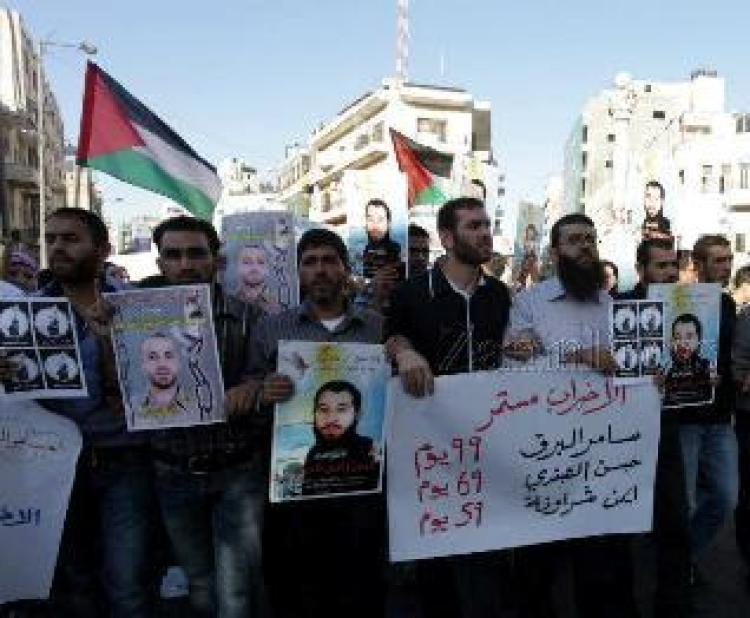 ويواصل ثلاثة أسرى إضرابهم المفتوح عن الطعام، وهم : سامر البرق المضرب عن الطعام منذ (99 يوما)، والأسير حسن الصفدي المضرب منذ (69 يوما)، والأسير أيمن شراونة المضرب من( 59 يوما).