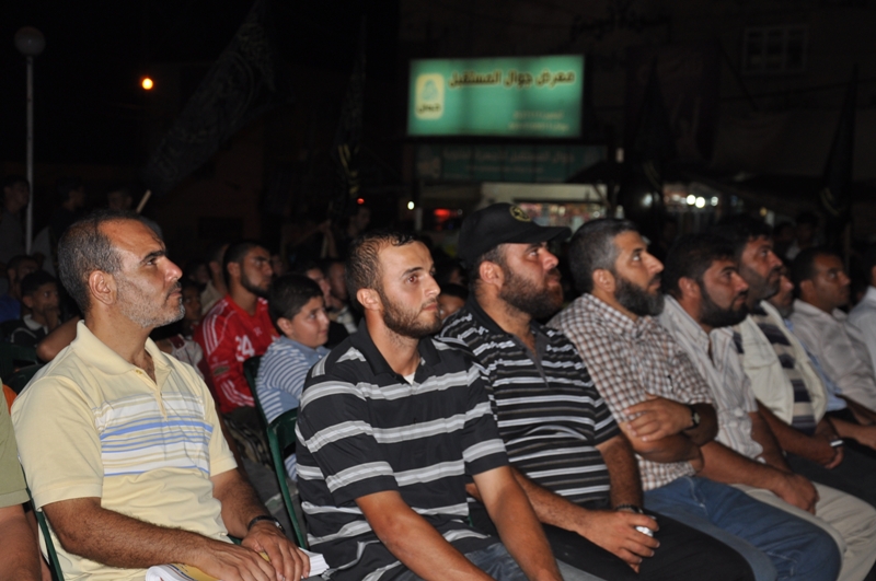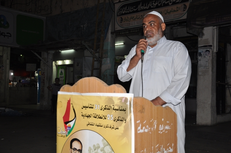 وفي كلمة الحركة والتي ألقاها القيادي في حركة الجهاد بمدينة دير البلح الشيخ أبو حازم مسمح والتي تحث فيها عن حياة ودور الشقاقي في إعادة فريضة الجهاد والمقاومة إلى فلسطين وإبراز القضية الفلسطينية على الساحة وجعلها قضية مركزية للمسلمين .
