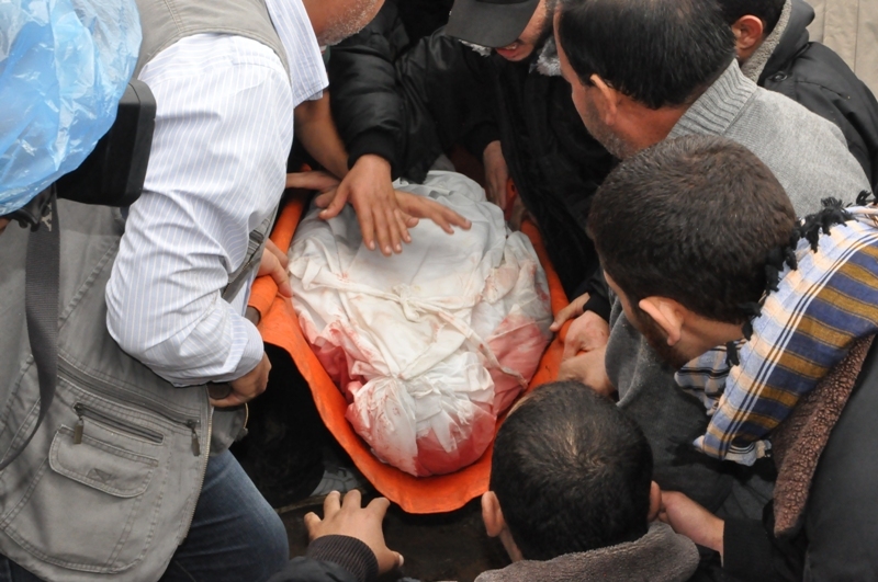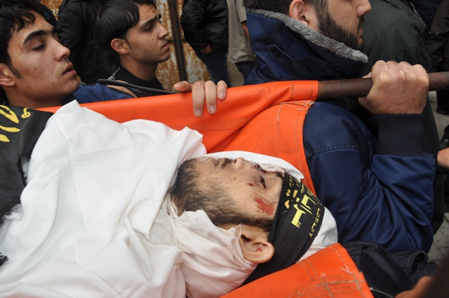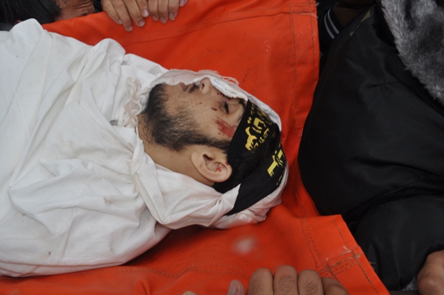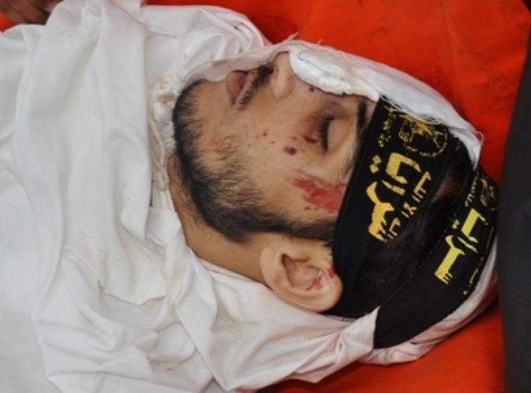 الجنازة على روح الشهيد ثم توجهت إلى منزل الشهيد لإلقاء نظرة الوداع عليه من قبل أهله
