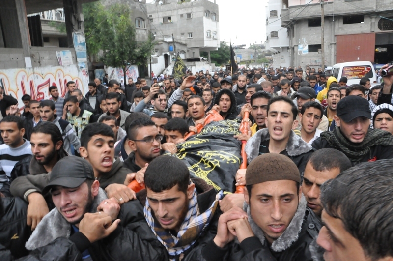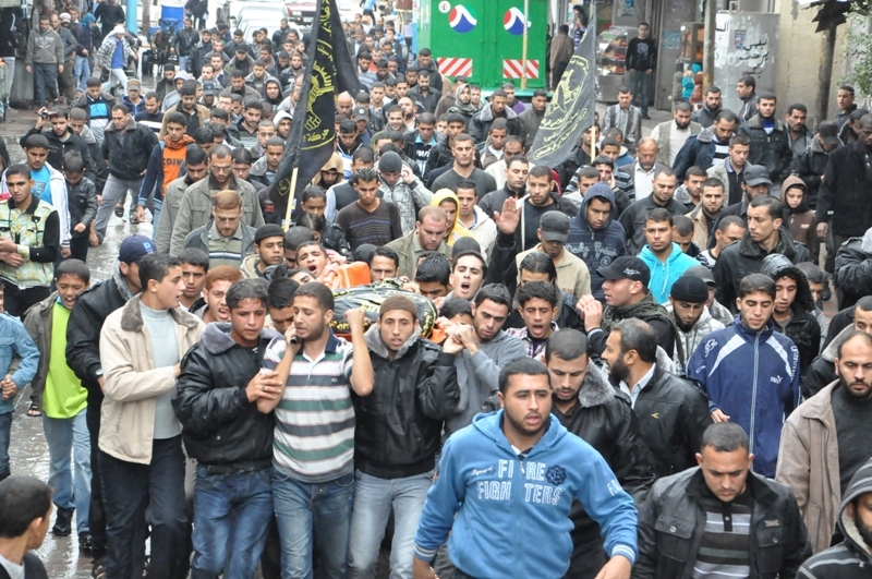 من عناصر ومناصري حركة الجهاد الإسلامي وحشد غفير من المواطنين. وردد المشاركين في جنازة التشييع