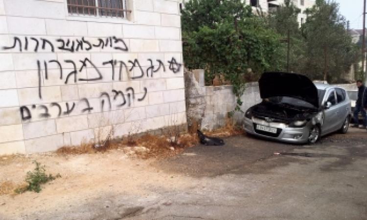 وقالت مصادر محلية إن مستوطنين تسللوا إلى منطقة تقع بالقرب من بلدة تقوع جنوبا وحطموا نوافذ مركبة وثقبوا إطاراتها وكتبوا عليها عبارة "دفع الثمن" و"أمر إبعاد" وشعارات عنصرية أخرى تطالب بقتل الفلسطينيين.
