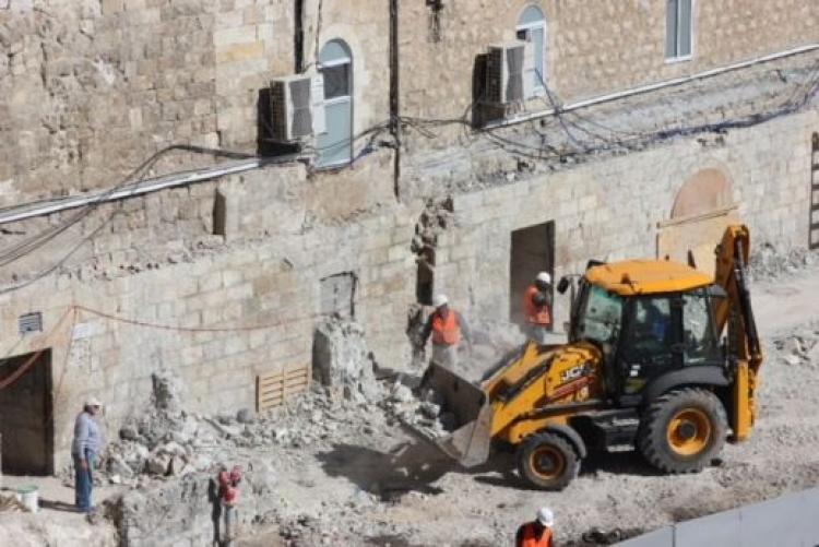في سياق متصل، تواصل جرافات الاحتلال منذ أكثر من أسبوع أعمال الجرف والهدم لواجهات أثرية عريقة في الواجهة الشمالية الغربية لساحة البراق، لتهيئة الارضية لبناء مجمع تهويدي كبير متعدد الاستعمالات على حساب وقف حي المغاربة، وفق المخطط الذي كشفت عن تفصيلاته المؤسسة قبل ايام.