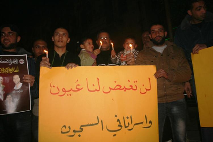 مسيرة شموع في بلدة عرابة تضامناً مع الأسرى المضربين