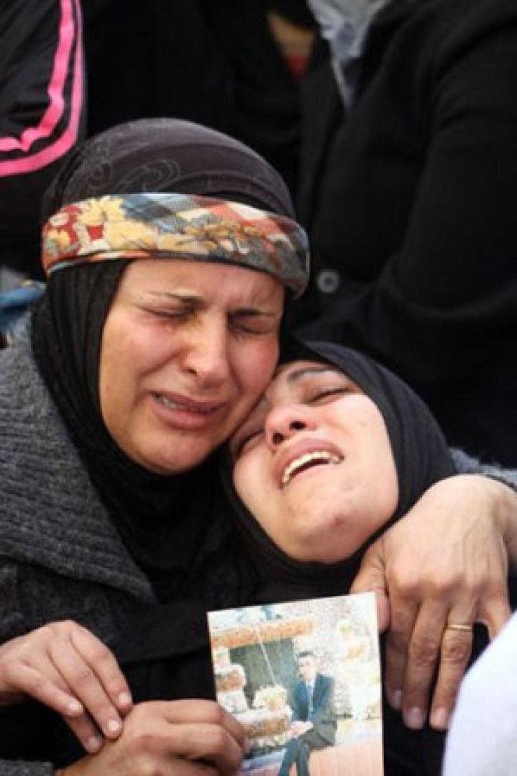 زوجة الشهيد دلال (25 عاما)، التي تحتضن في أحشائها جنينها ذو الأربعة أشهر وهي تبكي وتقول: 'كان يتلمس حركات طفلنا الجنين بكل حب وحنان، وكأنه يعرف أنه لن يراه... متمنيا أن يرى ابنه النور على هذه الدنيا في ظل أوضاع يعمها السلام والأمان'.