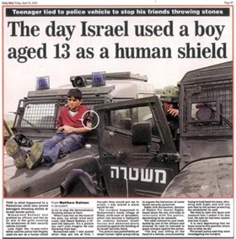 أفادت حركة حقوقية متخصصة في مراقبة الانتهاكات التي يتعرض لها الأطفال الفلسطينيون، في الأراضي الفلسطينية، بأن جنود الاحتلال أجبروا طفلاً فلسطينياً تحت تهديد السلاح على المشي بينهم، بينما كانوا يقمعون المتظاهرين أمام معتقل "عوفر" الواقع غرب رام الله وسط الضفة الغربية، وذلك يوم السابع عشر من شباط (فبراير) الجاري.
