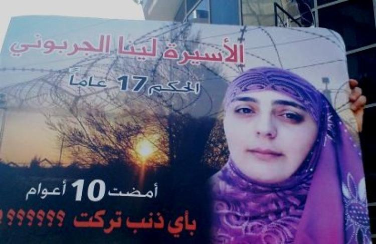 وتواجه الأسيرة لينا الجربوني -التي تنتمي لعائلة من بلدة عرابة في الجليل الفلسطيني المحتل عام 1948- حكما بالسجن لمدة 17 عاما، وهي الآن تدخل عامها الحادي عشر في الأسر، لتكون بذلك أقدم الأسيرات الفلسطينيات, وتنتمي الجربوني لحركة الجهاد الاسلامي ووجه لها العدو تهمة مساعدة المقاومة في تنفيذ عمليات.