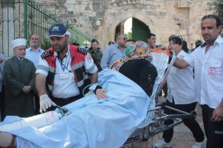ثمانية مصلين في المسجد الأقصى المبارك ظهر الثلاثاء، جراء اعتداء قوات صهيونية