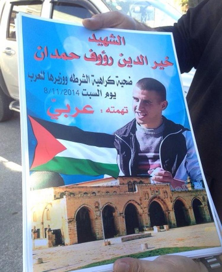 وأظهر تسجيل مصور لكاميرا مراقبة، قيام أفراد من شرطة الاحتلال بقتل الشاب حمدان فجر أمس، بدم بارد ودون مبرر ودون أن يشكل خطرا على عناصر الشرطة. وأطلق أفراد الشرطة النار على حمدان الذي كان يعبر عن غضبه على اعتقال شقيقه واحتجاجا على رشه بغاز سام في وجهه.