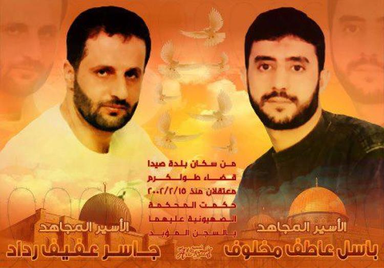 والأسير باسل عاطف محمد مخلوف (41 عامًا) المحكوم بالسجن المؤبد مدى الحياة بالإضافة إلى أربعين عامًا ومعتقل في 15 فبراير عام 2002، بتهمة قتل صهاينة، والانتماء إلى سرايا القدس الجناح العسكري لحركة الجهاد الإسلامي.