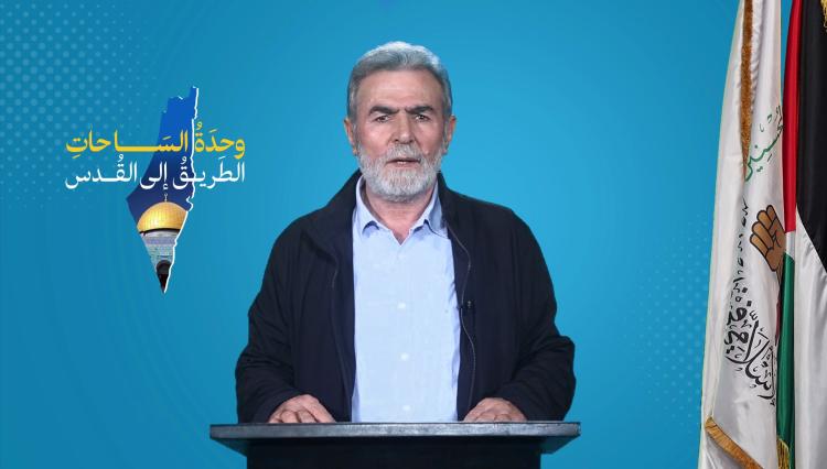 وهنا اسمحوا لي أن أتوجه بالتحية إلى الرجال الشجعان، رجال السرايا الأبطال الذين واجهوا العدو بكل قوة واقتدار، على مدار أيام المعركة وساعاتها، وكانوا ندًّا عنيدًا، وكسروا أهداف العدو، وأفشلوا مخططاته... لقد استهدف العدو حركتنا وسرايانا، وأعلن أنه سينهي حركة الجهاد. هذا هو إعلان العدو عن الغاية من عدوانه. أين هذا الشعار اليوم، وقادة العدو يشاهدونكم تحتشدون حول خياركم، وفي كل الساحات؟! أية خيبة تملأ قلوبهم، وهم يرون أن حركة الجهاد باقية، وتكبر بشعبها وأبنائها ومقاتليها، من رفح حتى غزة، ومن جنين حتى القدس، ومن سوريا حتى لبنان؟! هذه هي رسالة النصر التي ترسلها السرايا المباركة إلى أرواح قادتها الذين ارتقوا وهم يقودون معركة وحدة الساحات؛ خالد منصور، وتيسير الجعبري، وزياد المدلل، ورأفت شيخ العيد، وسلامة عابد، وإبراهيم النابلسي... وإلى شهداء الكتائب المظفرة؛ كتيبة جنين، وكتيبة نابلس، وكتيبة طوباس، وكتيبة طولكرم، وكل كتائبنا التي تكبر يومًا بعد يوم في الضفة الباسلة.
