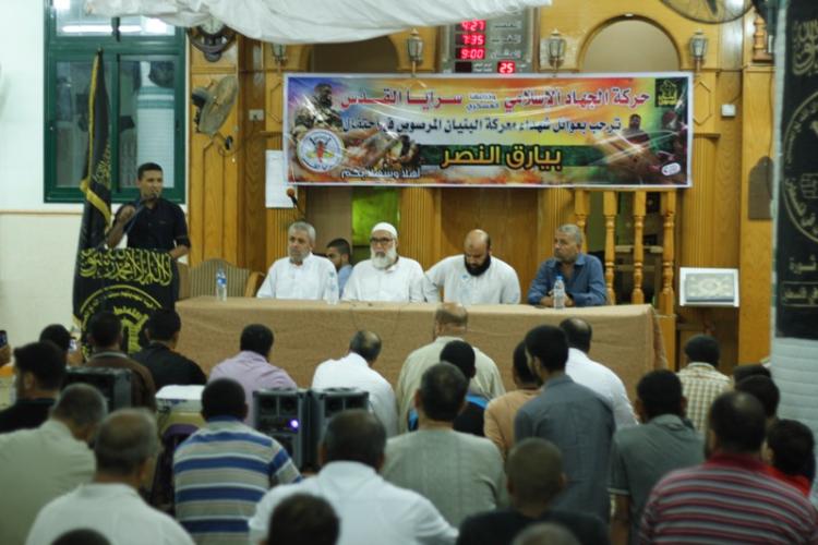 نظمت حركة الجهاد الإسلامي وجناحها العسكري سرايا القدس بمخيم النصيرات وسط القطاع مساء أمس الجمعة حفلاً تأبينياً لشهداء سرايا القدس الذين ارتقوا في معركة البنيان المرصوص، وحمل الحفل اسم (بيارق النصر).