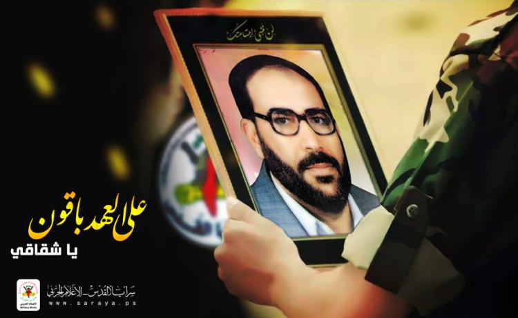 ويكمل قائلاً :" نعم رحمك الله يا أبا إبراهيم يا من بذرت البذرة الأولى لتنبت وليحصد حصادها رفاقك في مسيرة عملك الجهادي نعم اليوم الكل يعيد القضية ويحافظون على ابقاء جذوة الصراع مشتعلة، وتبقى فلسطين هي القضية العادلة الحاضرة وان تخلى عنها القريب والبعيد .. فرحمك الله يا أبا إبراهيم.."، مؤكدا انه كل ذكرى للشقاقي يأتي دم أبناء الجهاد ليعيد للقضية الفلسطينية مكانتها، أمثال الشهداء / محمد عاصي، ومعتز حجازي، وضياء التلاحمة ومهند الحلبي ...