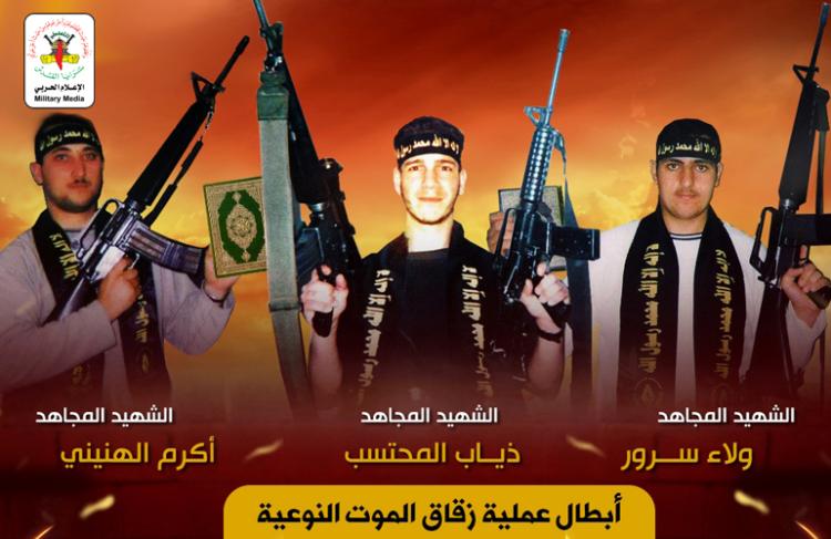 منفذو العملية: الاستشهاديين/ أكرم الهنيني وذياب المحتسب وولاء سرور.