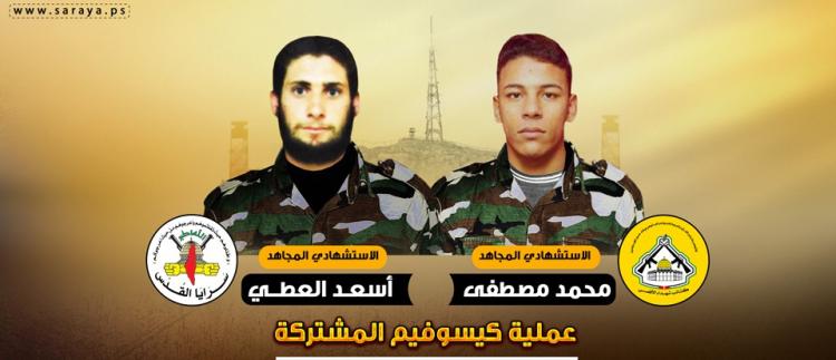 في مساء يوم الاثنين الموافق 28 شوال 1424هـ الموافق 22/12/2003م انطلق المجاهدان الاستشهاديان/ أسعد العُطي (من سرايا القدس) ومحمد مصطفى (من كتائب شهداء الأقصى) بعد صلاة المغرب مباشرة للعملية، متسلحين ببنادق من نوع كلاشينكوف ومخازن للرصاص وقنابلهم اليدوية، وجلسوا بانتظار الهدف الصهيوني وهو عبارة عن جيب عسكري يترجل منه الجنود الصهاينة بالقرب من مغتصبة كيسوفيم.