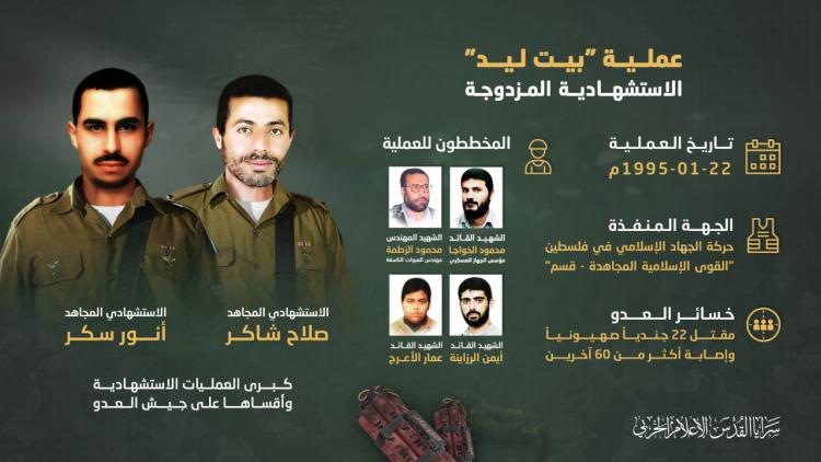 ففي تاريخ 22/1/2016 م، وقعت عملية بيت ليد الاستشهادية البطولية، التي كانت أول عملية استشهادية فلسطينية مزدوجة تقوم بها حركة الجهاد الإسلامي عام 1995، أو من حيث النتائج الكبيرة التي حققتها حيث بلغ عدد القتلى في صفوف جنود الاحتلال 22 جندياً ونحو 60 جريحا.