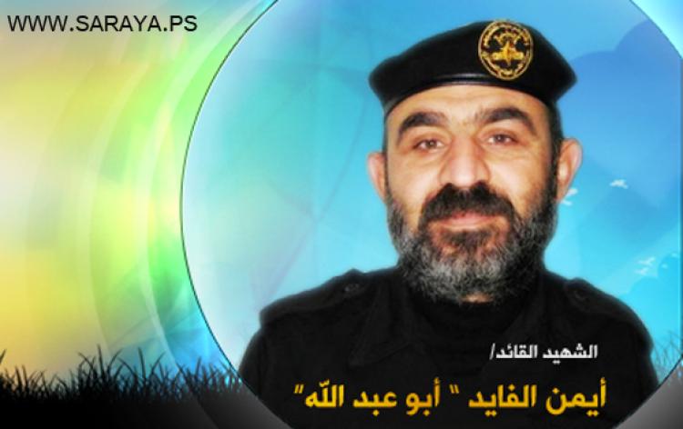وتابع بالقول:" وضع العدو الصهيوني الشهيد القائد أيمن فايد على قائمة الاستهداف بسبب نشاطه ومسيرته الجهادية التي بضرباته أوجعت الكيان المسخ فتم وضع أبو عبدالله على قائمة الاغتيال, وقام العدو يوم الجمعة بتاريخ 15-2-2008م باستهداف بيته بعدد من الصواريخ التي أطلقتها طائرات الاحتلال الحربية التي جعلت المنطقة كومه من الركام وأدت لاستشهاد القائد أيمن فايد وزوجته ونجليه علي وأيوب، وارتقى في الاستهداف كذلك الشهيدين زكريا الكفافي وعطا الله إسماعيل من سرايا القدس وإصابة آخرين وتدمير عدد من المنازل المجاورة للمنزل, فرحم الله شهيدنا القائد أبو عبدالله وكل الشهداء وأسكنهم فسيح جناته ونعاهد الله وكل الشهداء على مواصلة طريق الدم والشهادة حتى النصر والتحرير.