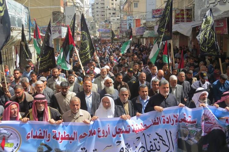 نظمت حركة الجهاد الإسلامي في فلسطين ظهر اليوم الجمعة مسيرة جماهيرية حاشدة دعماً لانتفاضة القدس، في محافظة خان يونس، حيث انطلقت المسيرة التي تقدمها قادة وشيوخ ووجهاء وكوادر حركة الجهاد الإسلامي بعد صلاة الجمعة مباشرة من أمام المسجد الكبير باتجاه وسط المحافظة.