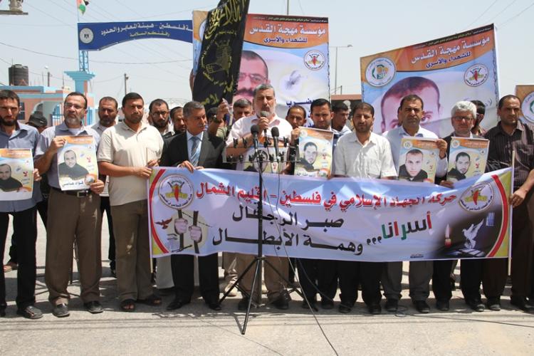 نظمت حركة الجهاد الإسلامي - إقليم الشمال- صباح اليوم الخميس وقفة تضامنية مع الأسيرين المضربين عن الطعام ضد الاعتقال الإداري قرب معبر بيت حانون "ايرز" .