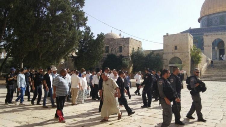 وذكر مركز اعلام القدس بأن ١٦ متطرفا دخلوا لباحات المسجد الاقصى، وأن شرطة الاحتلال تشترط على بعض الشبان الفلسطينيين تسليم هوياتهم الشخصية قبل دخول المسجد الأقصى.