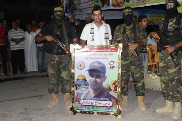 وقدمت حركة الجهاد وذراعها العسكري سرايا القدس برواز فيه صورة تذكارية للأسير المحرر ناجي أبو منديل .