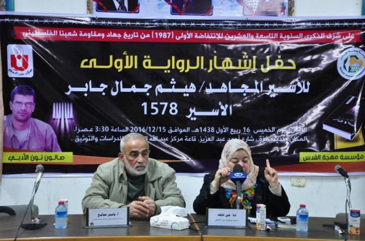 على شرف الذكرى التاسعة والعشرين للانتفاضة الأولى , أقامت مؤسسة مهجة القدس للشهداء والأسرى , وصالون نون الأدبي، مساء الخميس , حفل إشهار الرواية الأولى للأسير المعتقل في سجون الاحتلال الصهيوني, هيثم جمال جابر بعنوان ( الأسير 1875) , وحضر الحفل الذي أقيم في قاعة مركز عبد الله الحوراني للدراسات والتوثيق بمدينة غزة , عدداً من قيادة حركة الجهاد الإسلامي وأسر ى محررين , والعديد من المؤسسات الحقوقية المعنية بشؤون الأسرى.