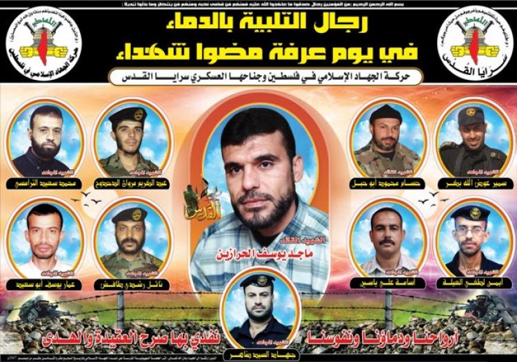 الاثنين السابع عشر من شهر ديسمبر للعام 2007 , كان هذا اليوم بمثابة يوم مؤلم لسرايا القدس ومجاهديها ولغزة ولكل فلسطين, حيث فقدت في هذا اليوم ستة من خيرة قادتها وجنودها, بعد أن أذاقوا العدو الويلات بصواريخهم القدسية المباركة وبعملياتهم النوعية, وإيلام العدو في كل ثغر من ثغور الوطن , فكانت شهادة أبطالنا الستة : ماجد الحرازين , وجهاد ضاهر , وكريم الدحدوح , وعمار أبو السعيد , وأيمن العيلة , ونائل طافش , كانت شهادتهم على ما فيها من حزن وألم , نقطة مضيئة في تاريخ جهاد شعبنا و مقاومتنا.