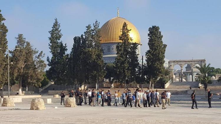 وأفاد شهود عيان، ان ستة مستوطنين، اقتحموا باحات المسجد الأقصى، وسط حماية أمنية مشددة من قبل قوات الاحتلال.