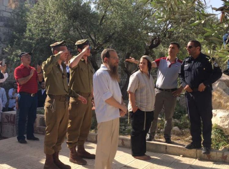 وأوضح أن اثنين من جنود الاحتلال بلباسهما العسكري أديا التحية العسكرية أمام قبة الصخرة المشرفة في منطقة "الحرش" بالأقصى بحماية عناصر من الشرطة.