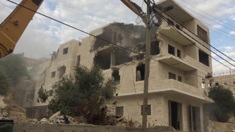وذكرت مصادر محلية، جرافات الاحتلال معززة بقوة عسكرية شرعت بهدم المبنى المكون من عدة طوابق وشقق، الذي يعود لكل من: عبد الرؤف محمود، ولؤي عبيد.
