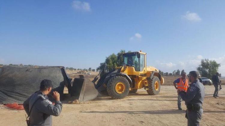 وقال الناشط سليم العراقيب، إن أليات الهدم مدعومة بسيارات الشرطة والقوات الخاصة، اقتحمت القرية وأخرجت الأهالي عنوة من منازلهم وسط أجواء الطقس المغبّرة، وهدمت منازلهم كاملة.