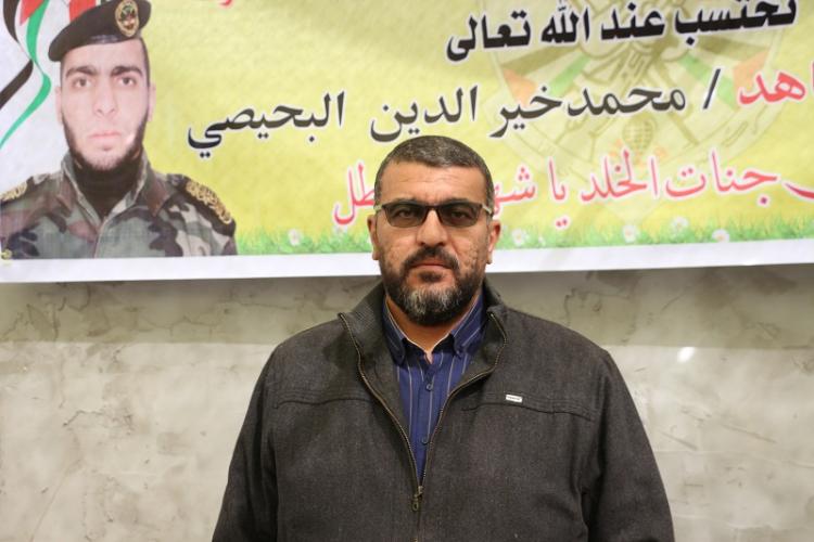 في رده على إعلان جيش الاحتلال جثامين خمسة شهداء كانوا مفقودين داخل نفق "كيسوفيم" الذي استهدفه الأسبوع الماضي، قال والد الشهيد محمد خير الدين البحيصي: عندما يرتقي الشهيد فنحن تختلط دموعنا بالزغاريد".