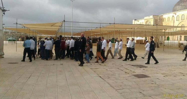 واصل مئات المستوطنين صباح اليوم الأحد، اقتحام المسجد الأقصى تنفيذاً لدعوات أطلقتها منظمات الهيكل المزعوم، لتكثيف اقتحامات المسجد الأقصى، وذلك بالتغريد على هاشتاغ "ألفان في يوم القدس".