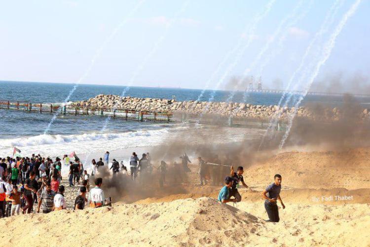 وقالت مصادر محلية إن قوات الاحتلال استهدفت بالرصاص وقنابل الغاز تجمعات المواطنين قرب الحدود البحرية الشمالية لقطاع غزة ضمن المسير البحري السابع.