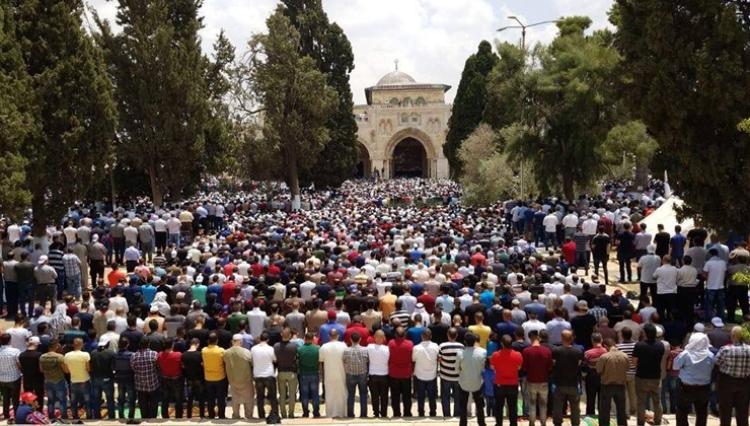 أدى 40 ألف مصلٍ، أمس الجمعة، صلاة الجمعة في المسجد الأقصى المبارك، في جمعة حملت عنوان "كسر المنع" رفضًا لإجراءات الاحتلال بالاعتقال والإبعاد للمقدسيين.