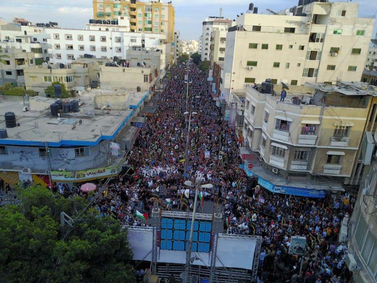 وانتشر ممجاهدي سرايا القدس، الجناح العسكري لحركة الجهاد الإسلامي، على عدّة مفترقات رئيسية في غزة تزامنًا مع المسيرة الجماهيرية الحاشدة، بالإضافة إلى مسير عسكري محمول.
