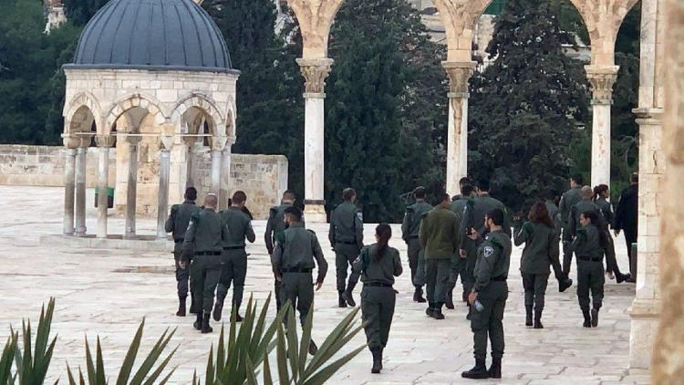 ويشهد المسجد الأقصى يوميًا (عدا يومي الجمعة والسبت) اقتحامات وانتهاكات من المستوطنين وأذرع الاحتلال المختلفة، في وقت تمنع فيه دخول عشرات الرجال والنساء إلى المسجد.